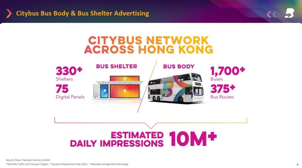 홍콩 교통 미디어 기업 브라보 트랜스포트 서비스(Bravo Transport)가 자사 버스 광고 네트워크의 도달 범위를 공개하며, 버스 외부 광고와 버스 쉘터 매체가 홍콩 도심을 효과적으로 커버하는 고효율 옥외광고 수단임을 강조했다.
