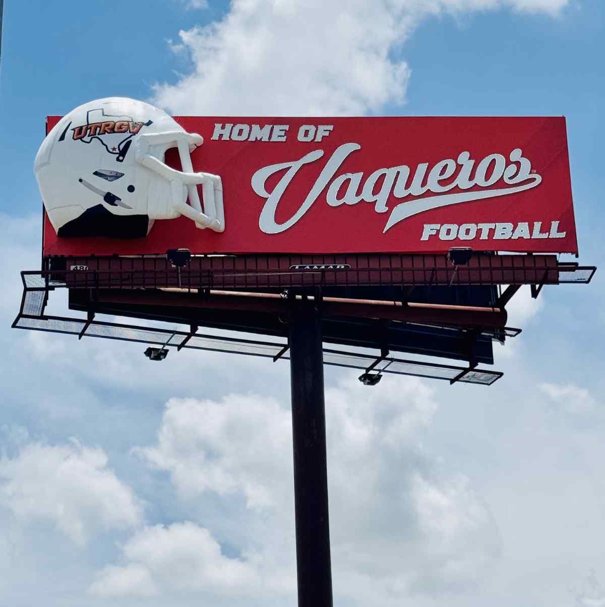 도로 위에서 사람들의 시선을 단숨에 사로잡는 광고라면, 그것은 단순한 홍보물이 아니라 하나의 문화적 사건일 수 있다. 미국 텍사스 리오그란데밸리대학교(University of Texas Rio Grande Valley·UTRGV)의 풋볼팀 바케로스(Vaqueros)가 선보인 거대한 3D 헬멧 빌보드는 바로 그 대표적 사례다. ‘학교의 자부심’을 상징적으로 드러낸 이 캠페인은 지역을 넘어 옥외광고 업계 전반에 강렬한 인상을 남기고 있다.