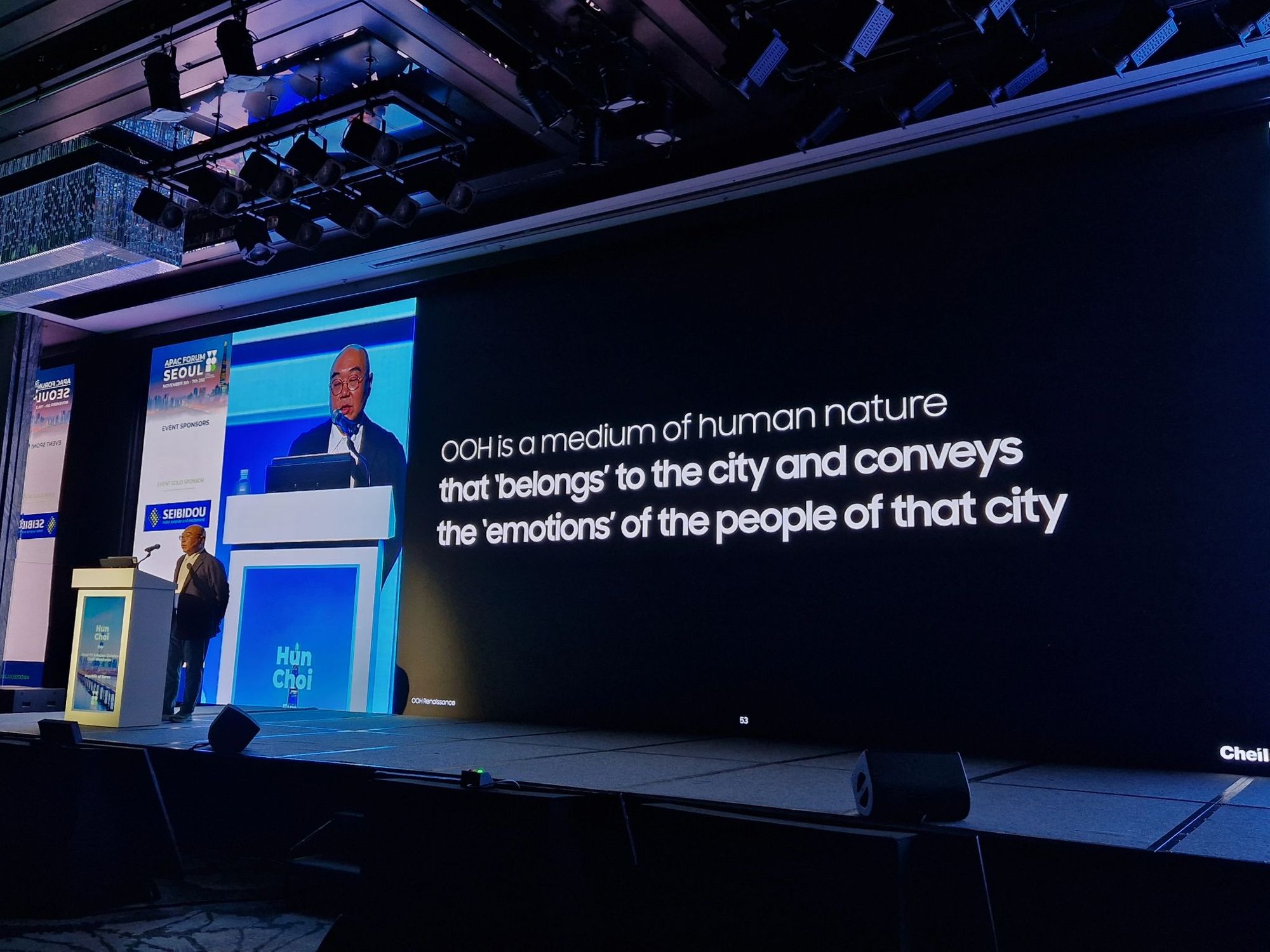 첫 세션에서는 제일기획( Cheil Worldwide ) 솔루션본부장 최훈 부사장이 ‘OOH 르네상스’를 주제로 발표했다. 그는 인간의 본능적 감정인 ‘경이로움(Awe)’을 중심으로 옥외광고가 다른 매체로는 대체할 수 없는 감정적 연결을 만들어낸다고 설명했다.