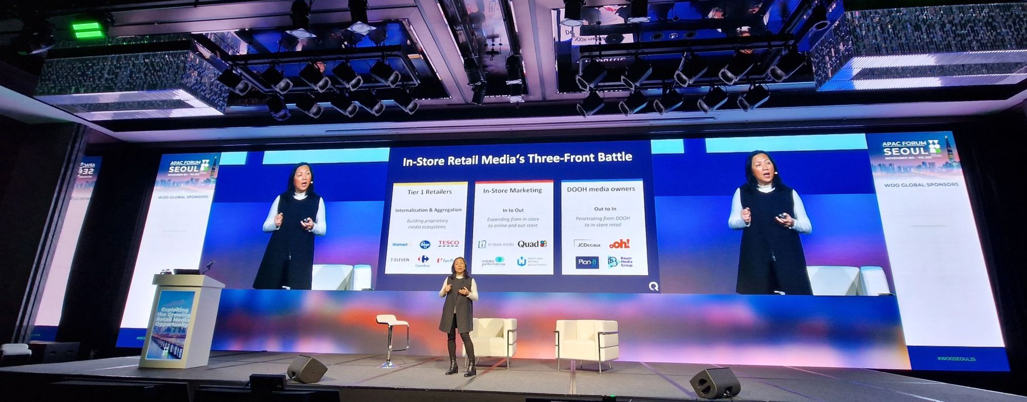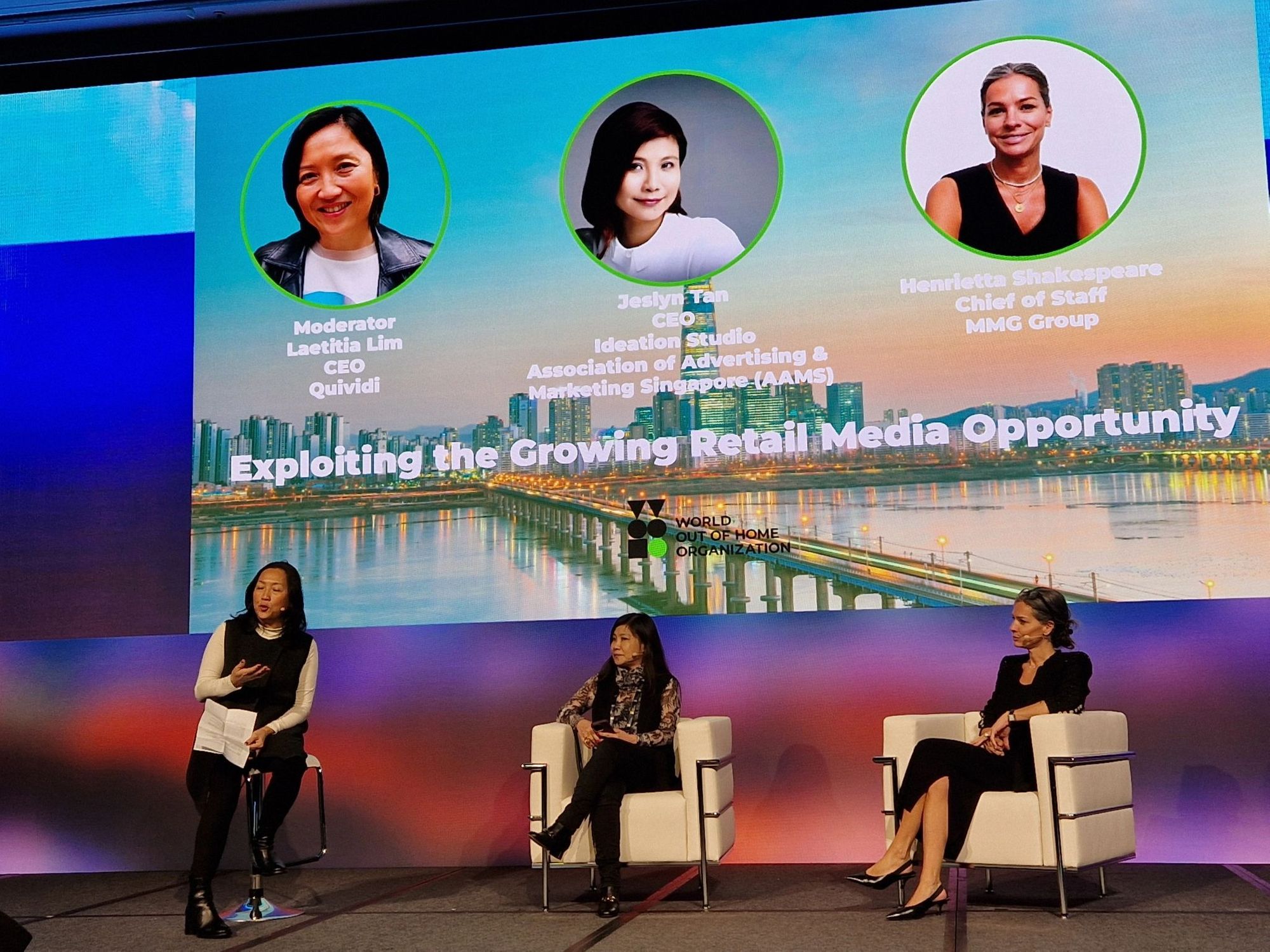 퀴비디( Quividi )의 라에티시아 림(Laetitia Lim) 대표는 ‘리테일 미디어의 성장 기회’를 주제로 발표하며 젯슬린 탄(Tan Jeslyn, Ideation Studio)과 헨리에타 셰익스피어(Henrietta Shakespeare, MMG Group)가 토론에 함께했다.