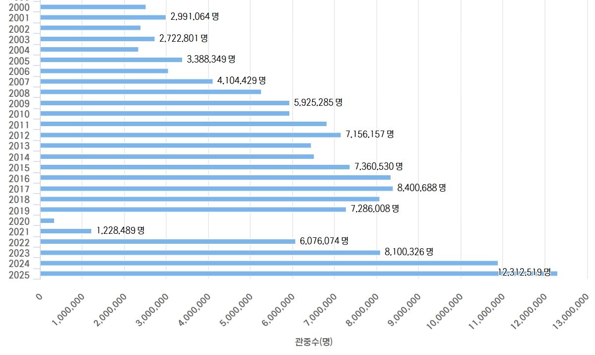 Attendance data underscores this transformation. Total KBO League attendance rose from 10.88 million in 2024 to a record 12,312,519 in 2025, with an average of more than 17,000 spectators per game across 720 matches. Seoul Jamsil Baseball Stadium played a decisive role in this growth curve, consistently delivering high crowd density and repeat visitation throughout the season.
