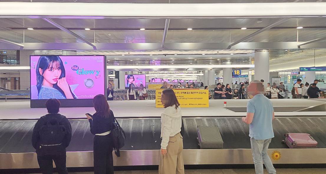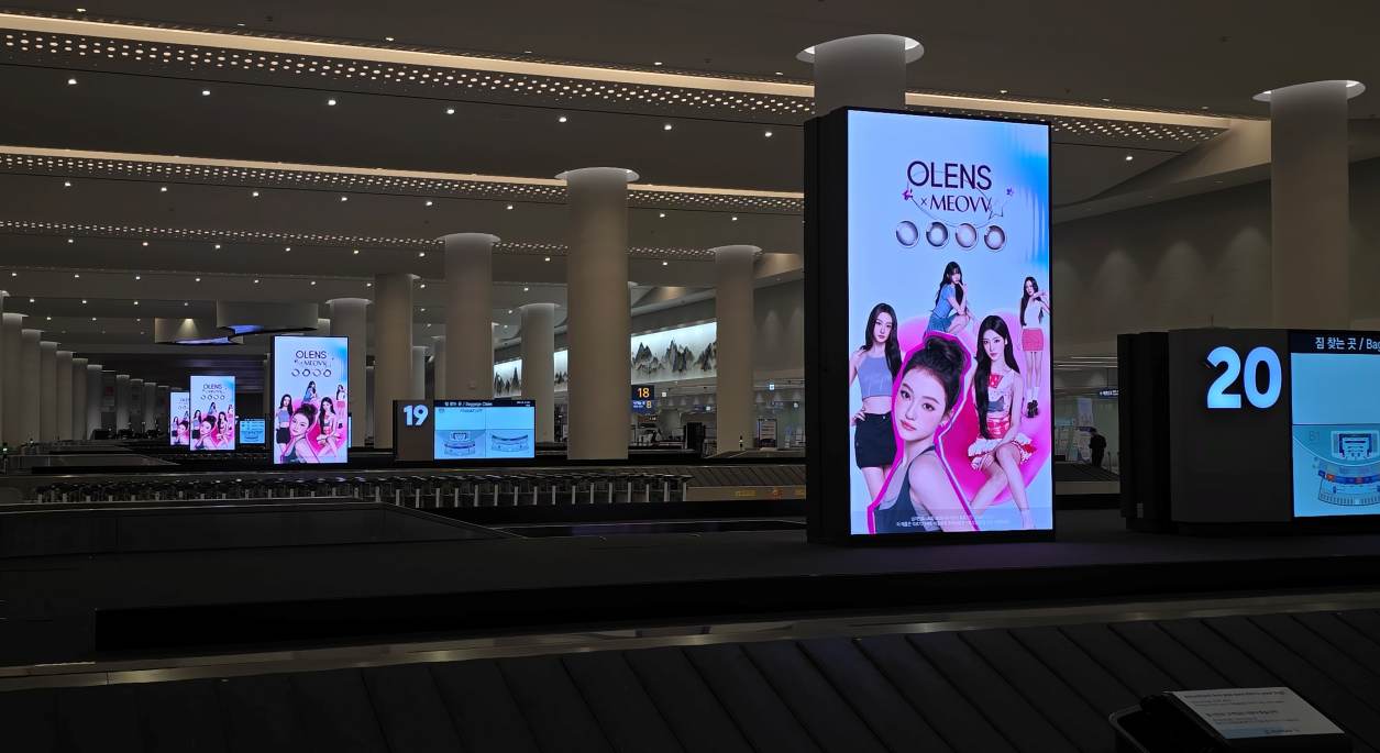 As part of its media rollout, OLENS executed a high-impact out-of-home activation at Incheon International Airport, targeting arriving passengers through the Terminal 1 and Terminal 2 carousel network. The premium digital display package is located on the first floor within baggage claim areas, immediately after travelers complete immigration procedures.