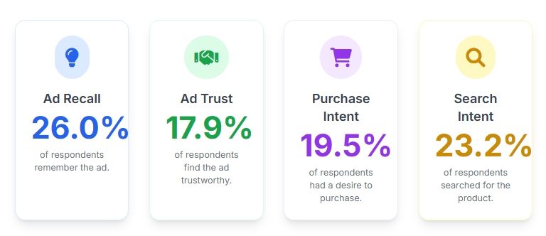 OOH advertising, while not leading the rankings, demonstrated competitive strength. In the “ad recall” category, OOH reached 26.0 percent—higher than newspapers (16.3 percent) and comparable to radio (24.6 percent). More significantly, 23.2 percent of respondents said OOH ads had prompted them to search for related products, a figure that underscores its role as a catalyst for consumer behavior.