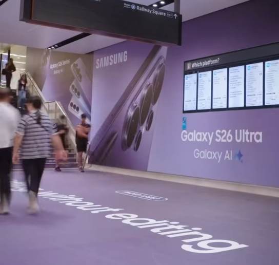 삼성전자가 호주 시드니 중심 교통 허브를 활용한 대형 옥외광고 캠페인을 선보였다. 이번 프로젝트는 제이씨데코 호주 (JCDecaux Australia)와 협업으로 진행됐다. 이번 캠페인은 시드니 센트럴역 전체를 활용하는 ‘스테이션 도미네이션’ 방식으로 집행됐다. 바닥 그래픽과 계단 래핑, 주요 동선 전반에 걸친 광고 배치를 통해 역사 전체를 하나의 브랜드 공간으로 전환했다.